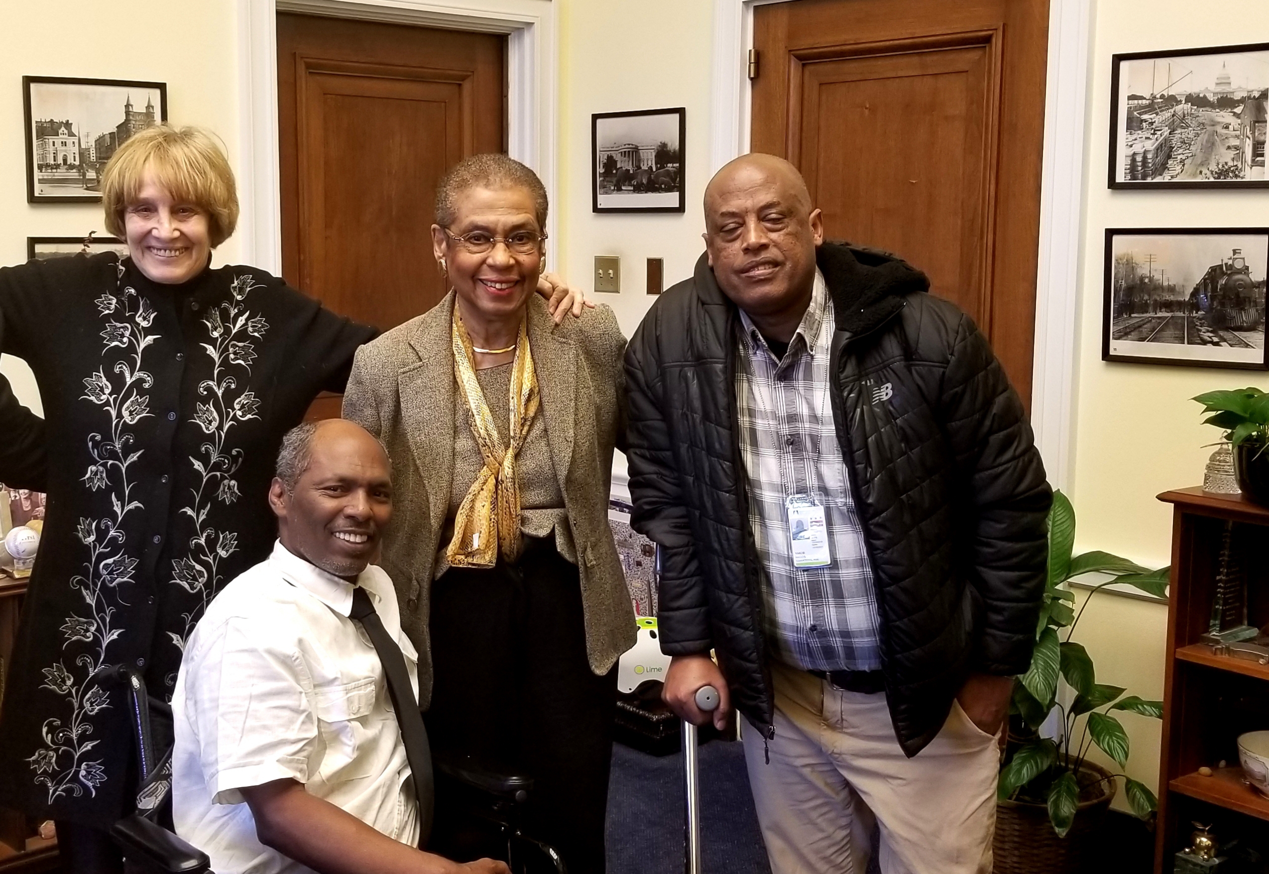 Andrea Barron (left) and two torture survivors with Congresswoman Eleanor Holmes Norton.